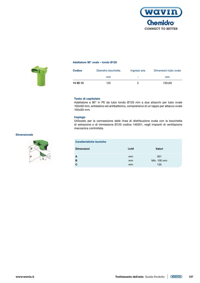 di estrazione o di immissione Ø125 codice 145051, negli impianti di ventilazione