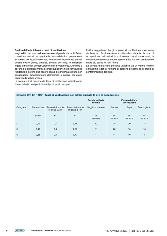 Estratto UNI EN 15251 Tassi di ventilazione per edifici durante le ore di occupazione