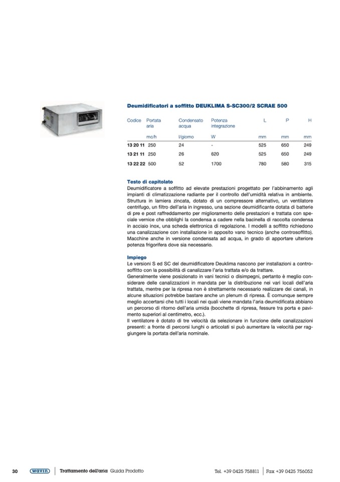 Deumidificatori a soffitto DEUKLIMA S-SC300/2 SCRAE 500
