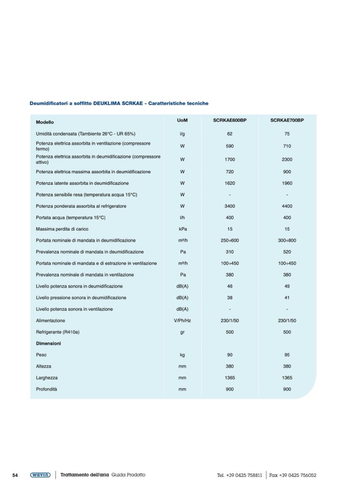 Deumidificatori a soffitto DEUKLIMA SCRKAE - Caratteristiche tecniche