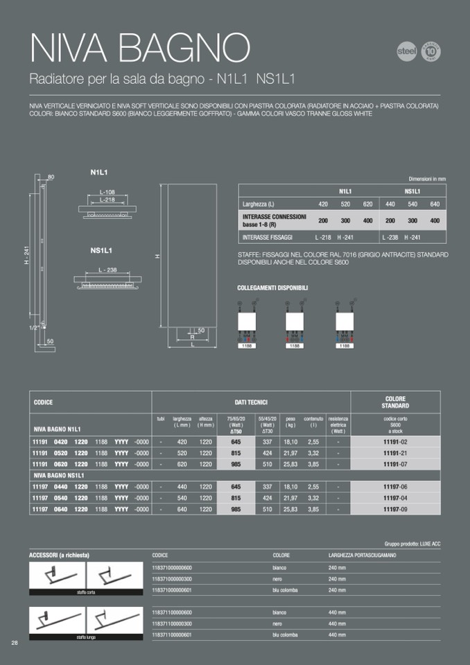 NIVA VERTICALE VERNICIATO E NIVA SOFT VERTICALE SONO DISPONIBILI CON PIASTRA COLORATA (RADIATORE IN ACCIAIO + PIASTRA COLORATA)