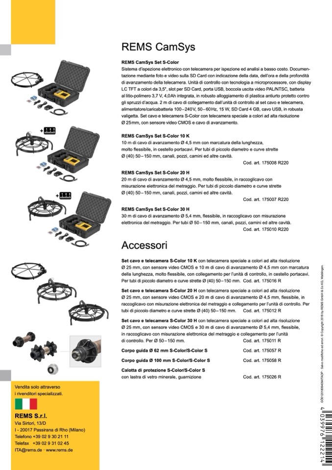 Ø 25 mm, con sensore video CMOS e 30 m di cavo di avanzamento Ø 5,4 mm, flessibile,