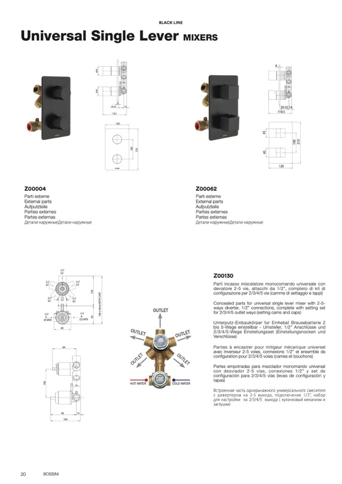 for 2/3/4/5 outlet ways (setting cams and caps)