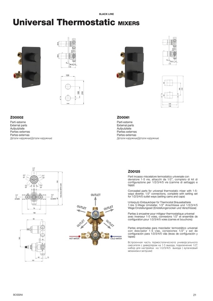 смесителя с дивертером на 1-5 выхода, подключение 1/2”,