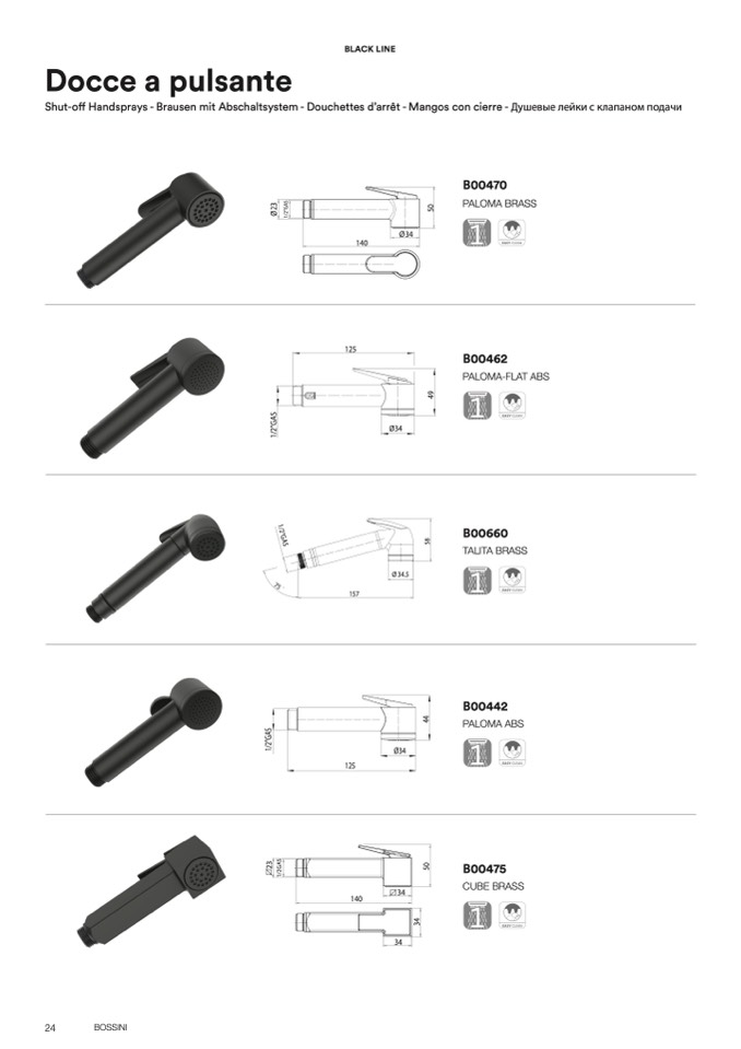 Shut-off Handsprays - Brausen mit Abschaltsystem - Douchettes d’arrêt - Mangos con cierre - Душевые лейки с клапаном подачи