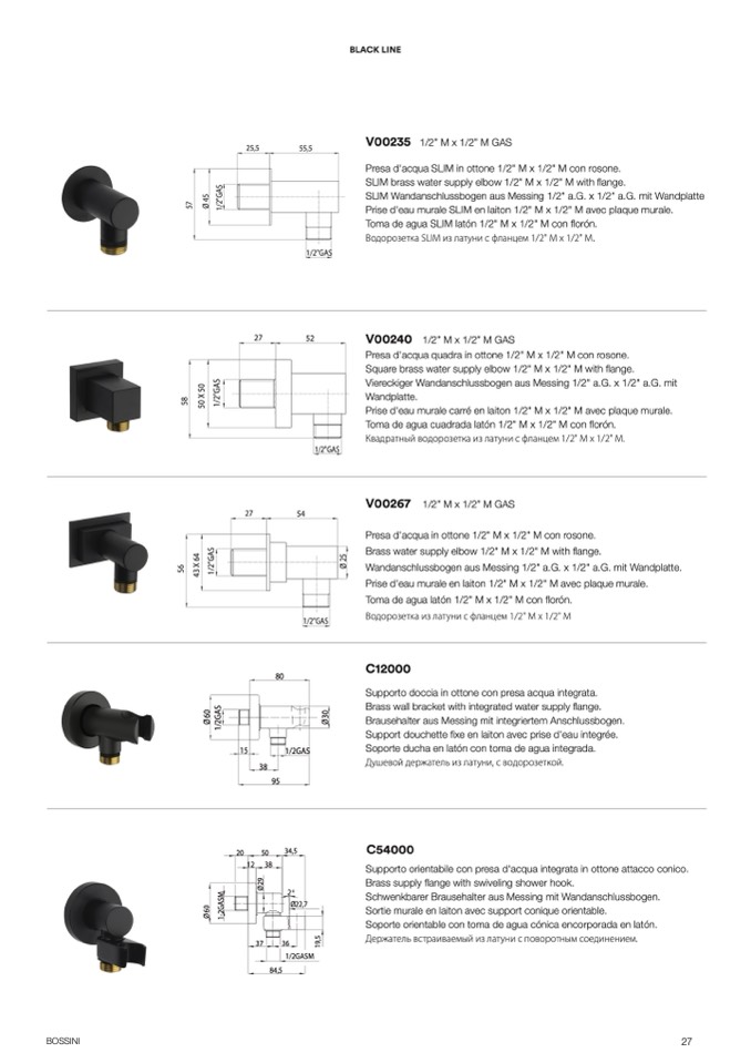 SLIM brass water supply elbow 1/2" M x 1/2" M with flange.
