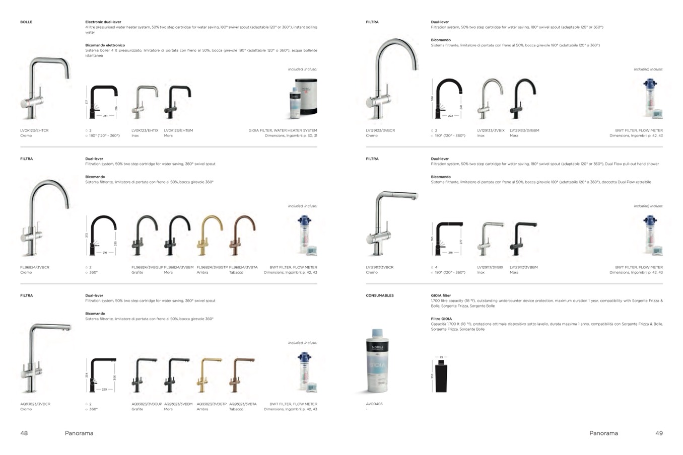 4 litre pressurised water heater system, 50% two step cartridge for water saving, 180° swivel spout (adaptable 120° or 360°), instant boiling