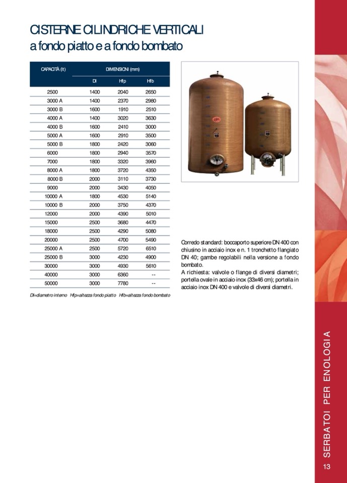 DI=diametrointerno Hfp=altezzafondopiatto Hfb=altezzafondobombato