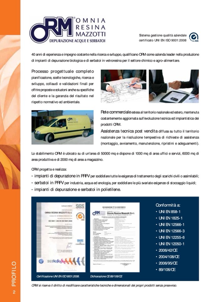 di impianti di depurazione biologica e di serbatoi in vetroresina per il settore chimico e agro-alimentare.