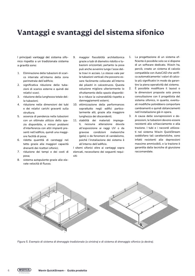 Figura 5. Esempio di sistema di drenaggio tradizionale (a sinistra) e di sistema di drenaggio sifonico (a destra).