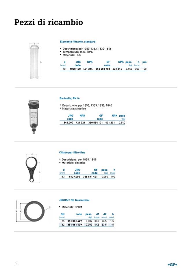 Elemento filtrante, standard