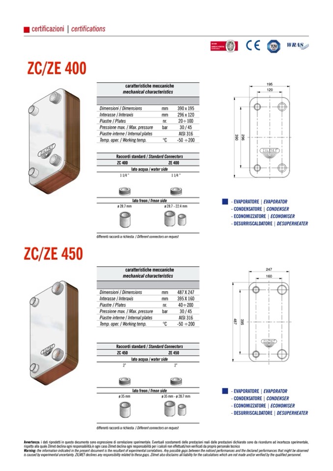 is caused by experimental uncertainty. ZILMET declines any responsibility related to these gaps. Zilmet also disclaims all liability for the calculations which are not made and/or verified by the qualified personnel.