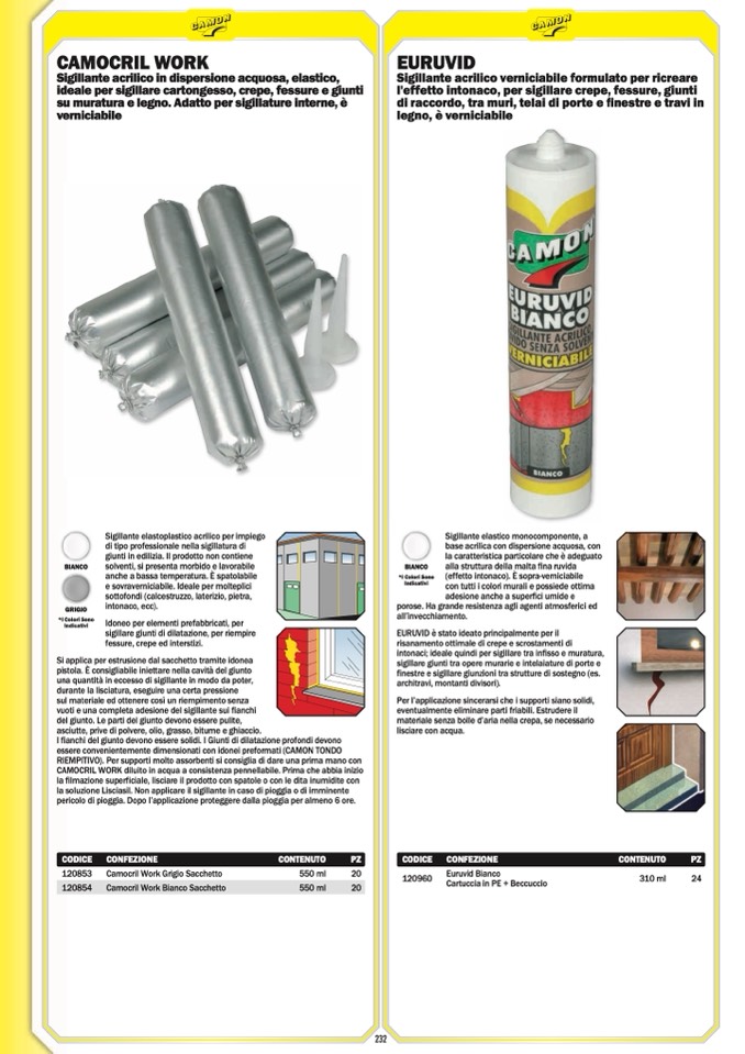 intonaci; ideale quindi per sigillare tra infisso e muratura,