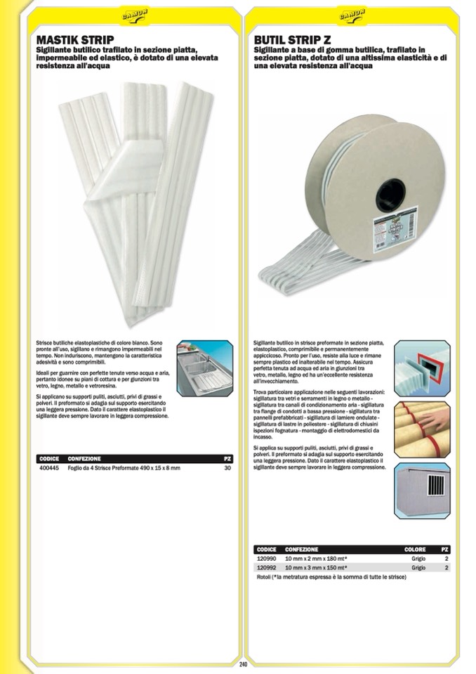 Sigillante butilico in strisce preformate in sezione piatta,