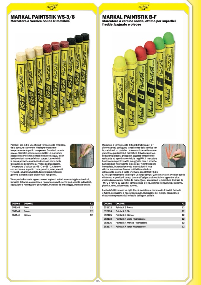 F, resta perfettamente visibile per un lungo tempo. Questi marcatori a vernice solida