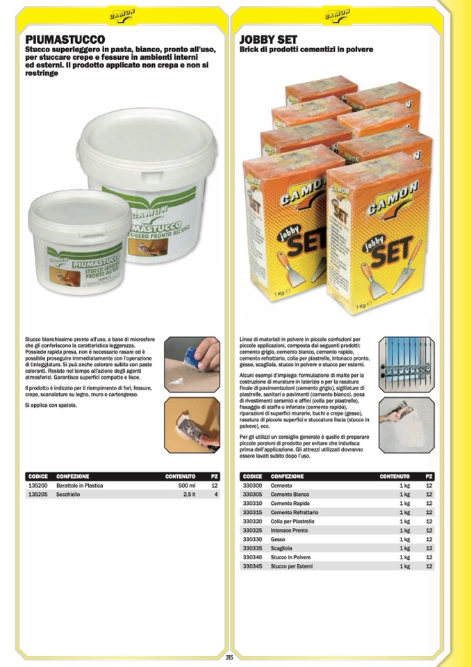 cemento refrattario, colla per piastrelle, intonaco pronto,