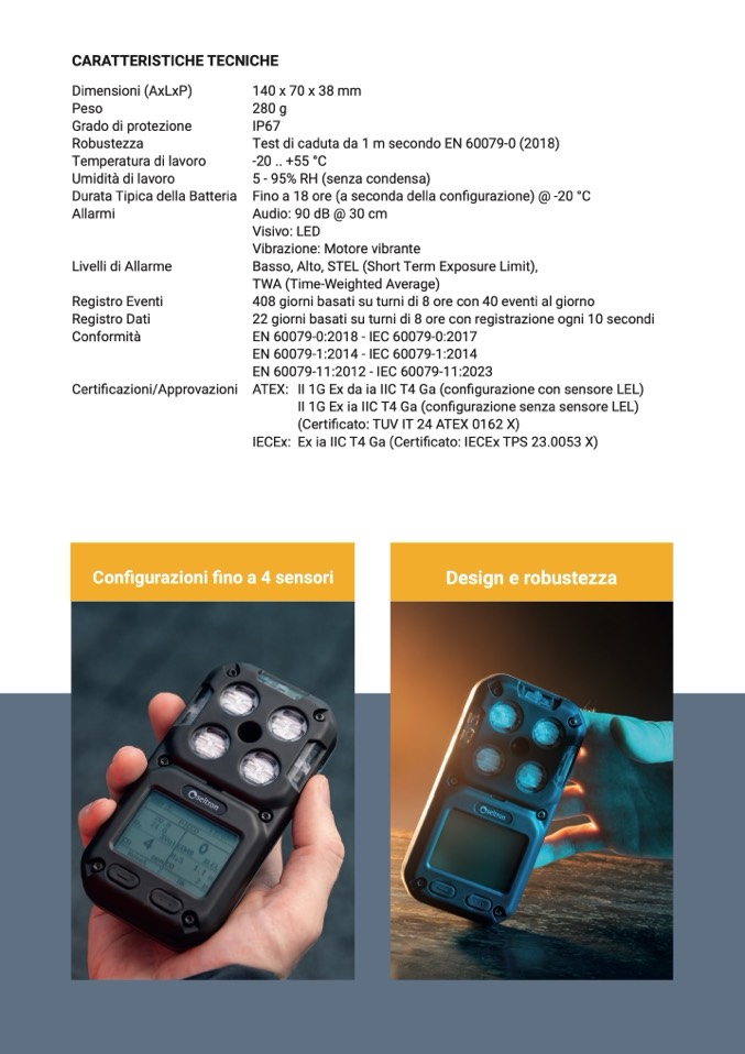ATEX: II 1G Ex da ia IIC T4 Ga (configurazione con sensore LEL)
