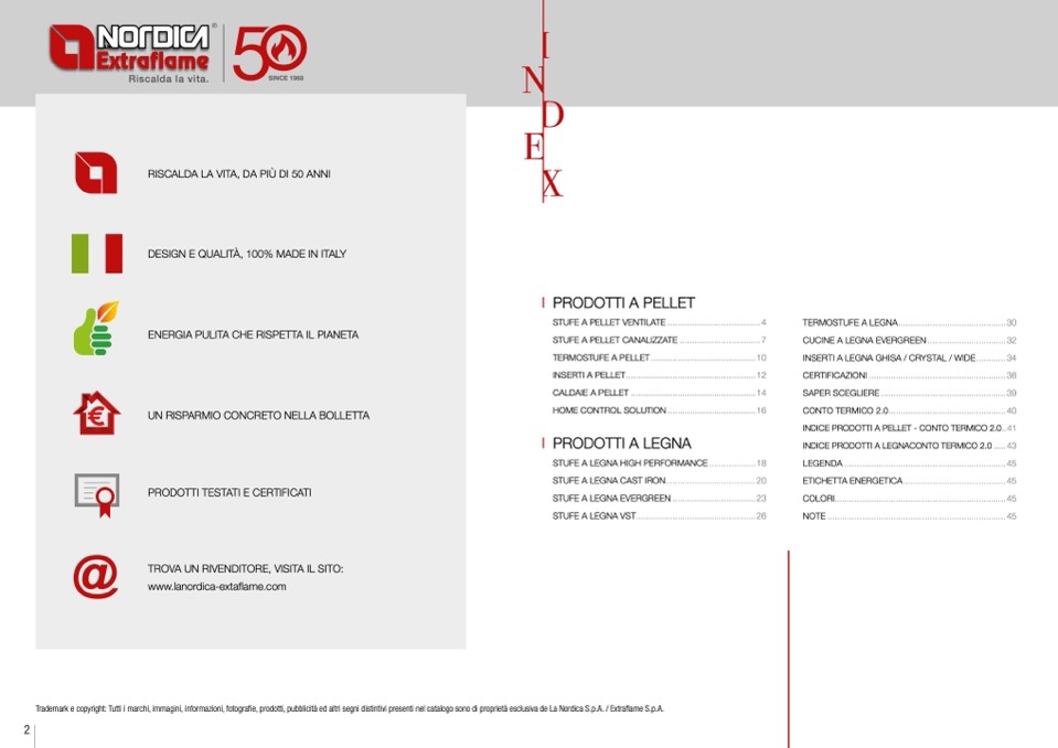 Trademark e copyright: Tutti i marchi, immagini, informazioni, fotografie, prodotti, pubblicità ed altri segni distintivi presenti nel catalogo sono di proprietà esclusiva de La Nordica S.p.A. / Extraflame S.p.A.
