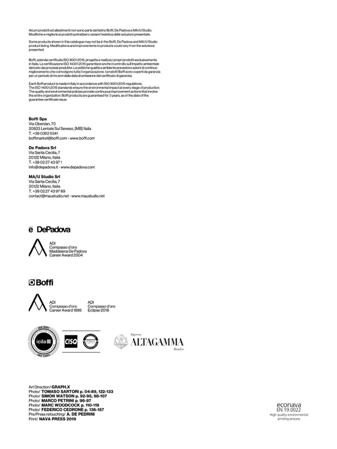 Some products shown in this catalogue may not be in the Boffi, De Padova and MA/U Studio