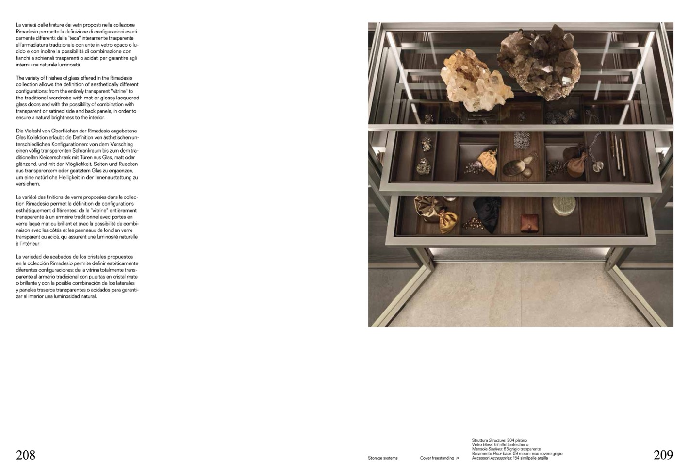 The variety of finishes of glass offered in the Rimadesio