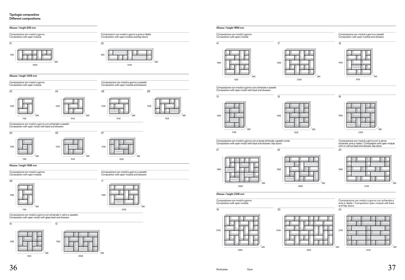 schienale, ante a ribalta / Composition with open module
