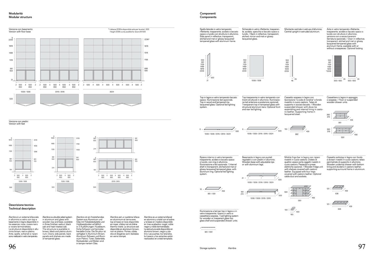 te, acidato, specchio e laccato opaco o
