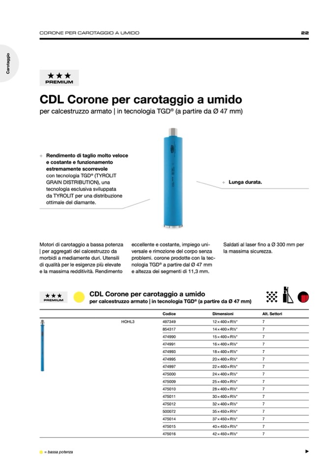 CORONE PER CAROTAGGIO A UMIDO