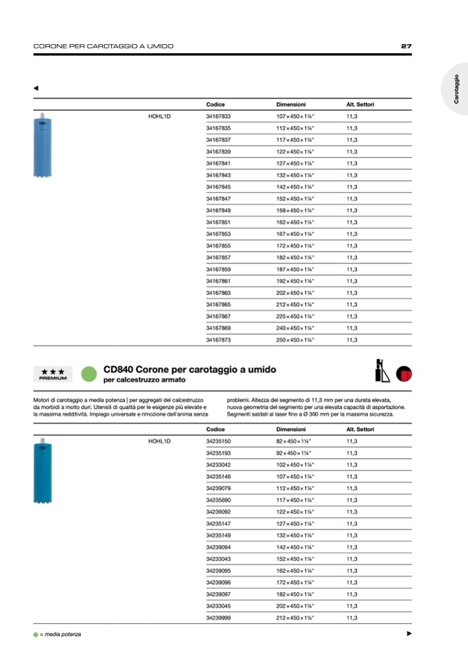 CORONE PER CAROTAGGIO A UMIDO