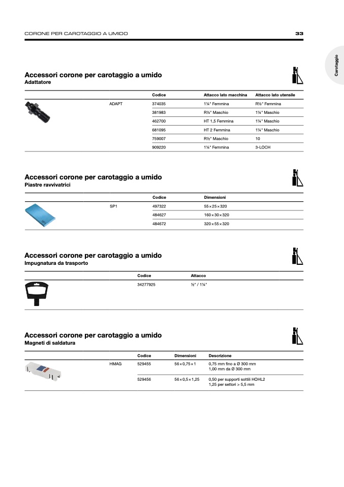 CORONE PER CAROTAGGIO A UMIDO