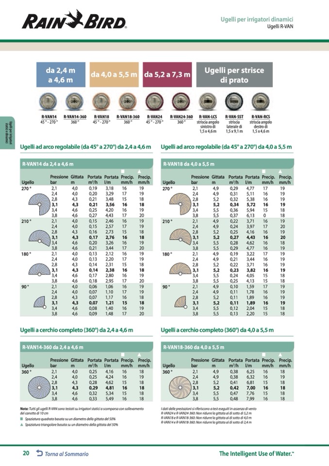 Nota: Tutti gli ugelli R-VAN sono testati su irrigatori statici a scomparsa con sollevamento