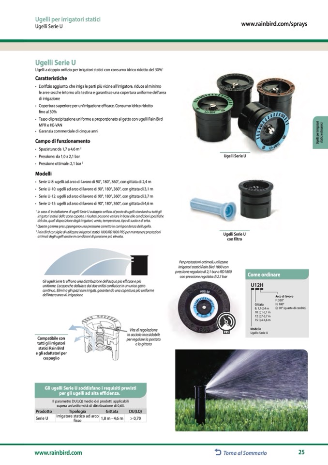 • Tasso di precipitazione uniforme e proporzionato al getto con ugelli Rain Bird