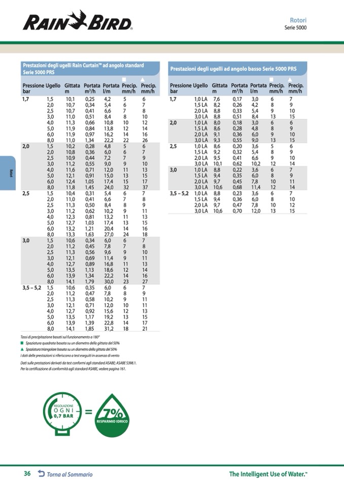 Prestazioni degli ugelli Rain Curtain