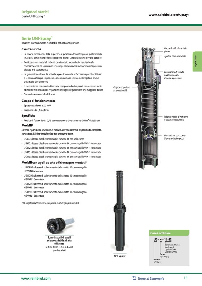 * Gli irrigatori UNI-Spray sono compatibili con tutti gli ugelli Rain Bird