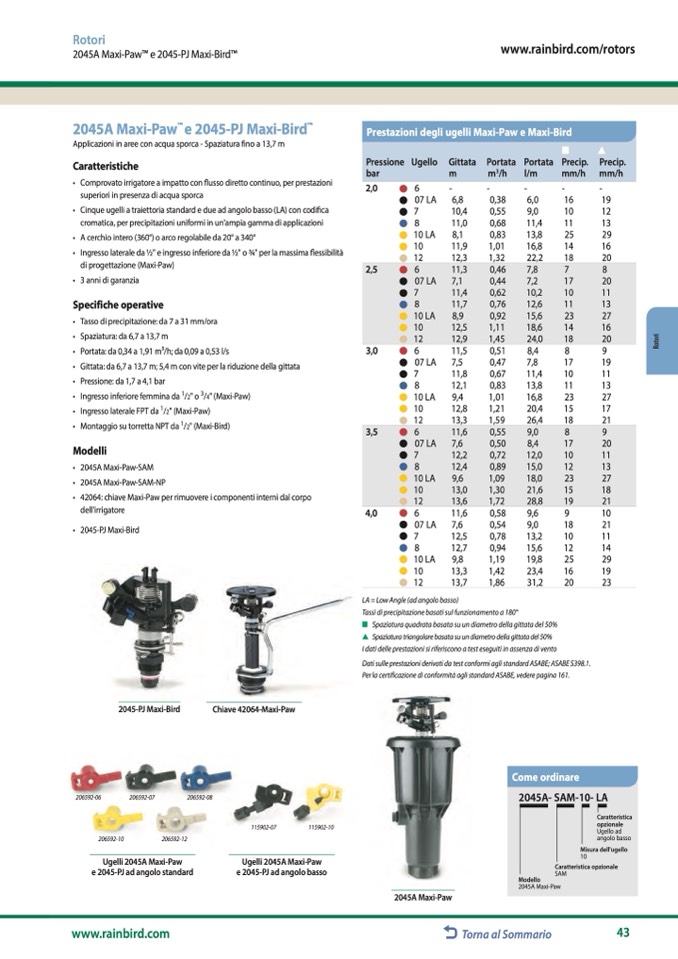 Prestazioni degli ugelli Maxi-Paw e Maxi-Bird