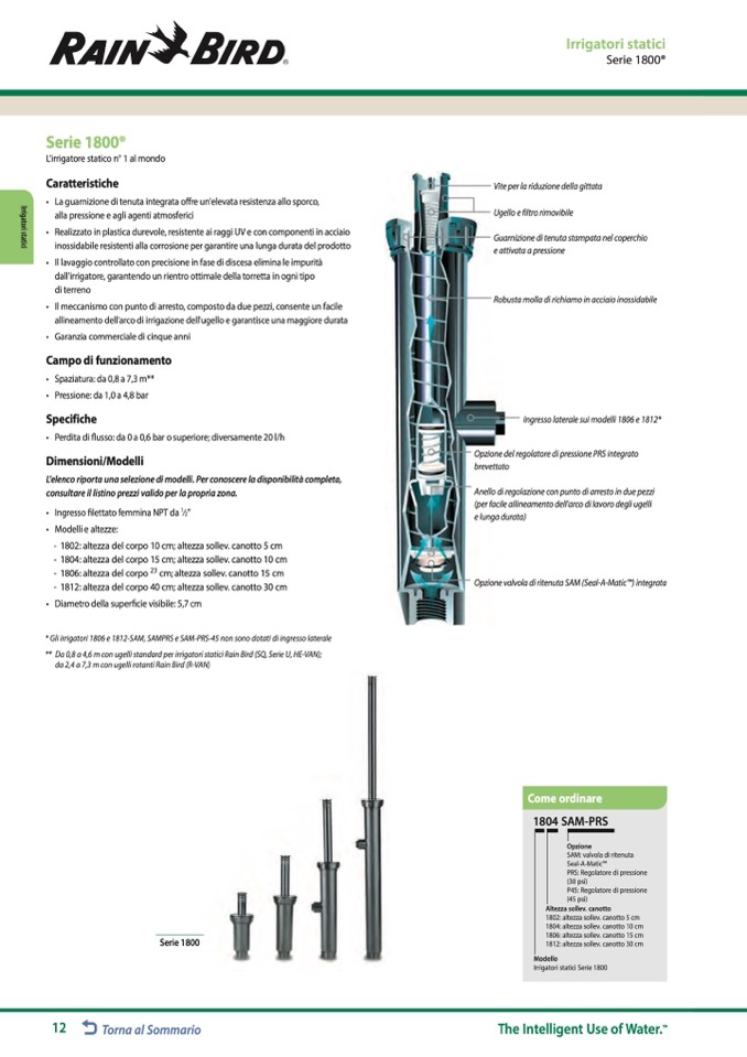 * Gli irrigatori 1806 e 1812-SAM, SAMPRS e SAM-PRS-45 non sono dotati di ingresso laterale
