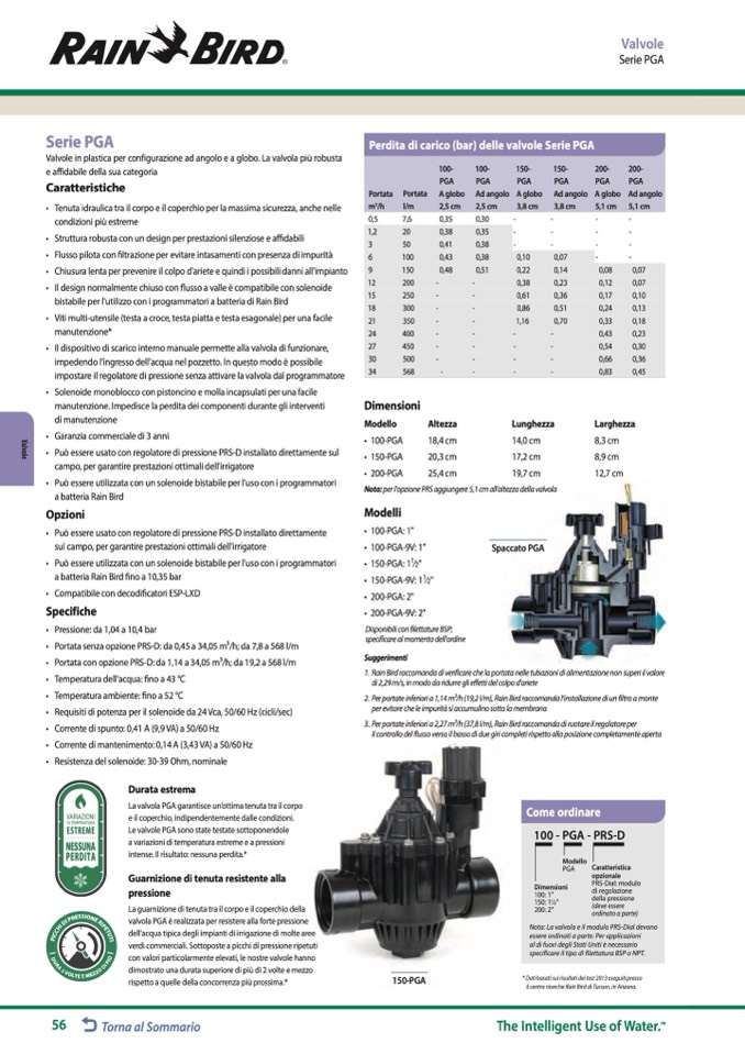 2. Perportateinferioria1,14m3/h(19,2l/m),RainBirdraccomandal‘installazionediunfiltroamonte