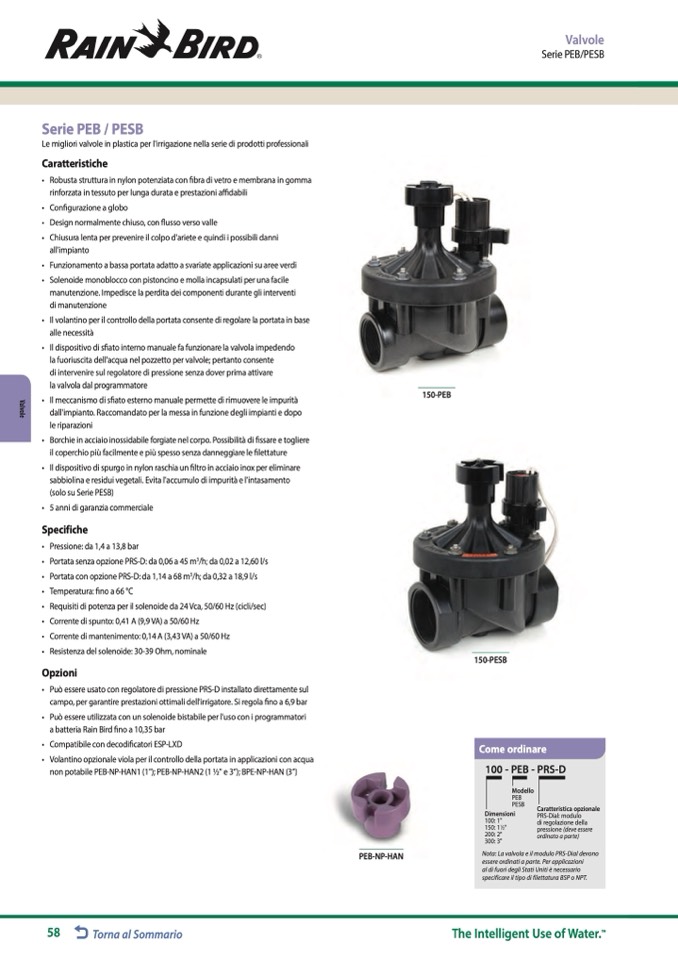 non potabile PEB-NP-HAN1 (1"); PEB-NP-HAN2 (1 1⁄2" e 3”); BPE-NP-HAN (3”)
