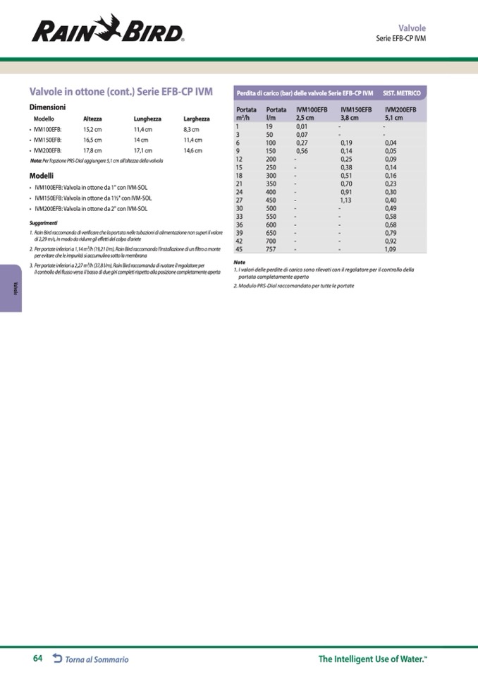 2. Perportateinferioria1,14m3/h(19,21l/m),RainBirdraccomandal‘installazionediunfiltroamonte