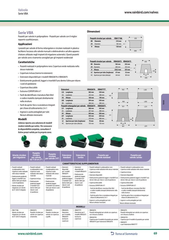 chiature utilizzate negli impianti di irrigazione automatici. Questi pozzetti