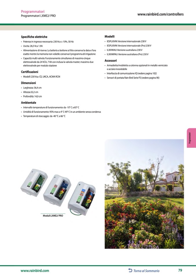 • Sensori di portata Rain Bird Serie FS (vedere pagina 90)