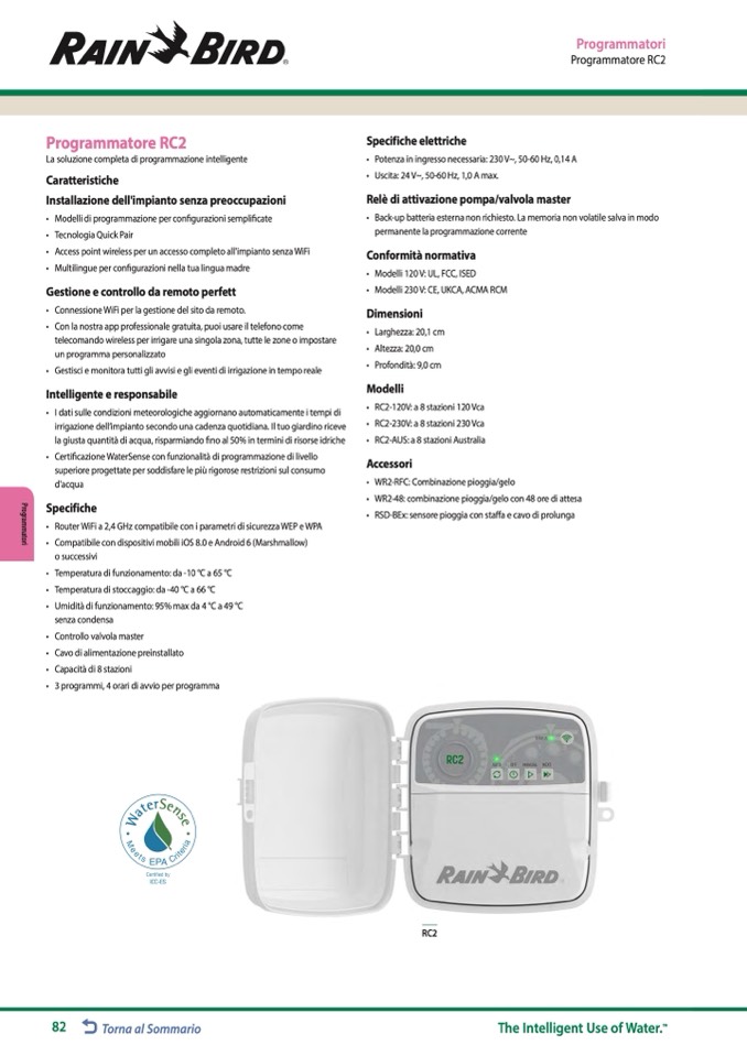 • Certificazione WaterSense con funzionalità di programmazione di livello