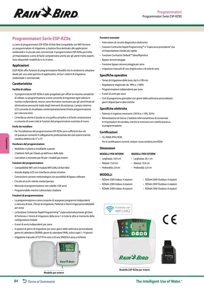 Per le certificazioni correnti, visitare: www.rainbird.com/RZXe