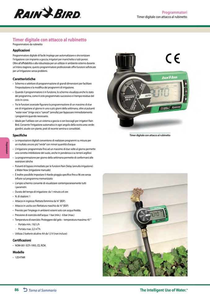 • Durata del tempo di irrigazione: da 1 minuto a 6 ore