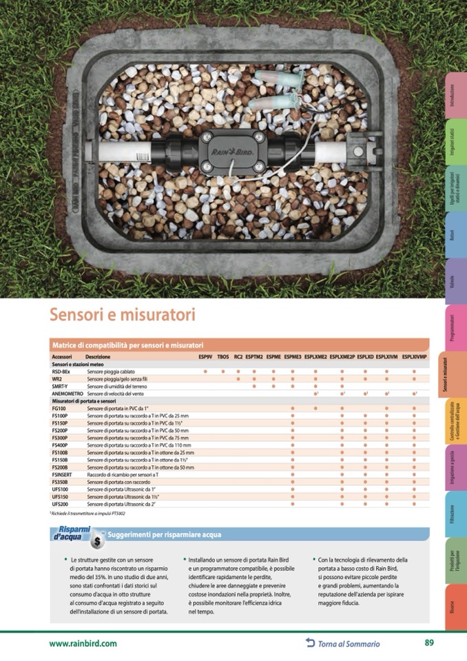 Sensore di portata su raccordo a T in PVC da 25 mm