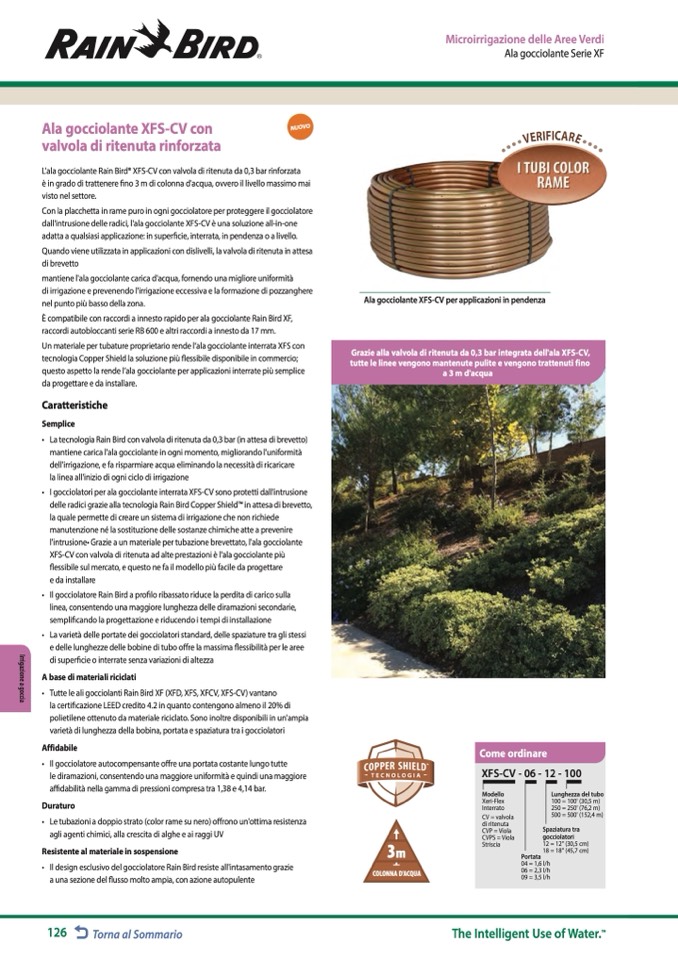 delle radici grazie alla tecnologia Rain Bird Copper ShieldTM in attesa di brevetto,