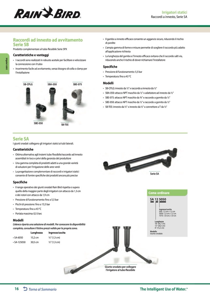 • Il range operativo dei giunti snodati Rain Bird rispetta o supera
