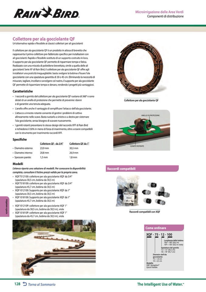 gocciolanti Serie XF di Rain Bird, il collettore per ala gocciolante QF o