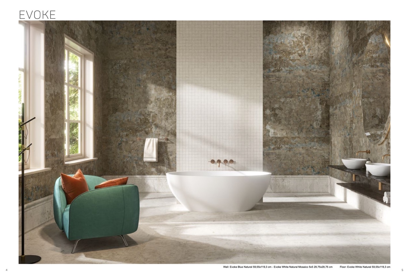 Wall: Evoke Blue Natural 59,55x119,3 cm - Evoke White Natural Mosaico 5x5 29,75x29,75 cm