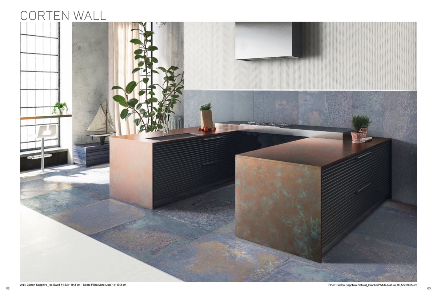 Floor: Corten Sapphire Natural_Cracked White Natural 99,55x99,55 cm