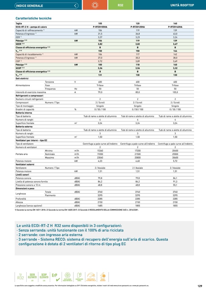 1) Secondo la norma EN 14511 2018. 2) Secondo la norma EN 14825 2017. 3) Secondo il REGOLAMENTO DELLA COMMISSIONE (UE) n. 2016/2281.